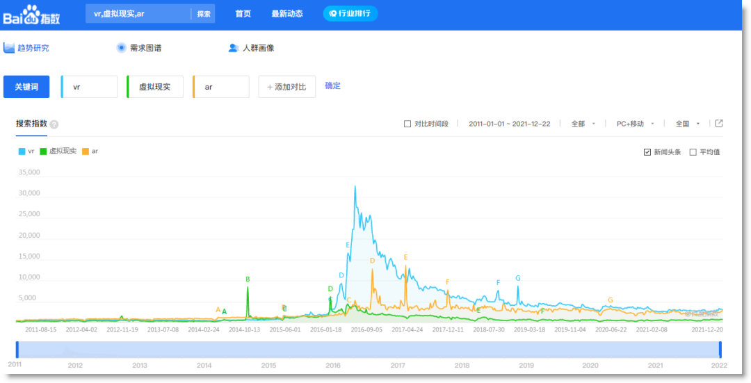當前的我們已經(jīng)可以從VR等相關(guān)關(guān)鍵詞在百度搜索指數(shù)的起伏中開啟馬后炮視角:再先進的技術(shù)在缺乏落地基礎的時候,早期的熱情可能只是資本推波助瀾下的概念與營銷而已。